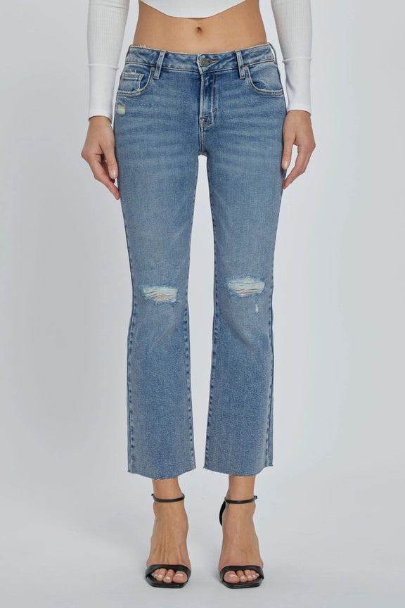 Model is wearing a size 26. Measurements are based on a size 26. 93% Cotton, 5% Poly, 2% Spandex Rise 8 1/2 in Inseam 27 in